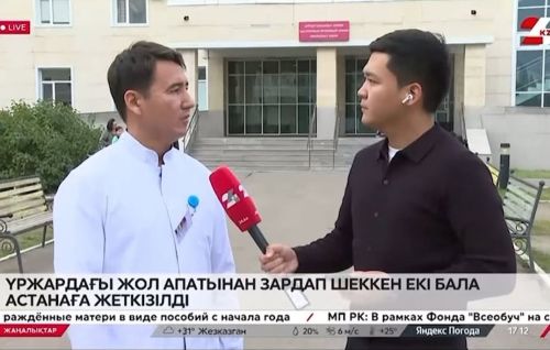2025 жылғы 20 тамызда Абай облысының Үржар ауданынан Астанаға жол-көлік оқиғасынан қатты зардап шеккен екі бала шұғыл тасымалданды.